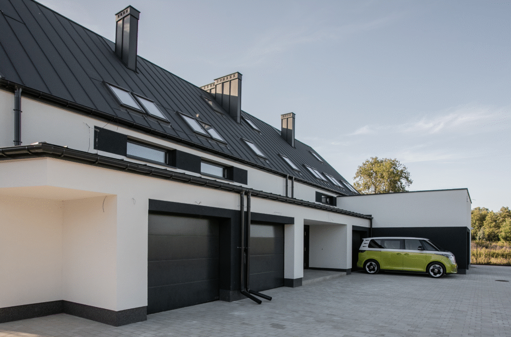 prywatny garaż i zielona przestrzeń